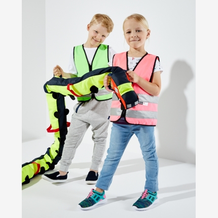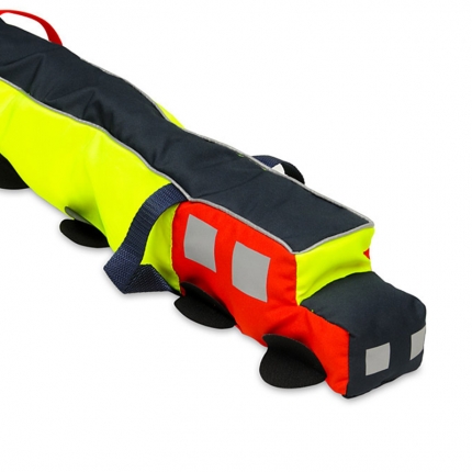 Na wężu znajdują się uchwyty wyposażone w paski odblaskowe ułatwiające dzieciom ustawienie się w parach.